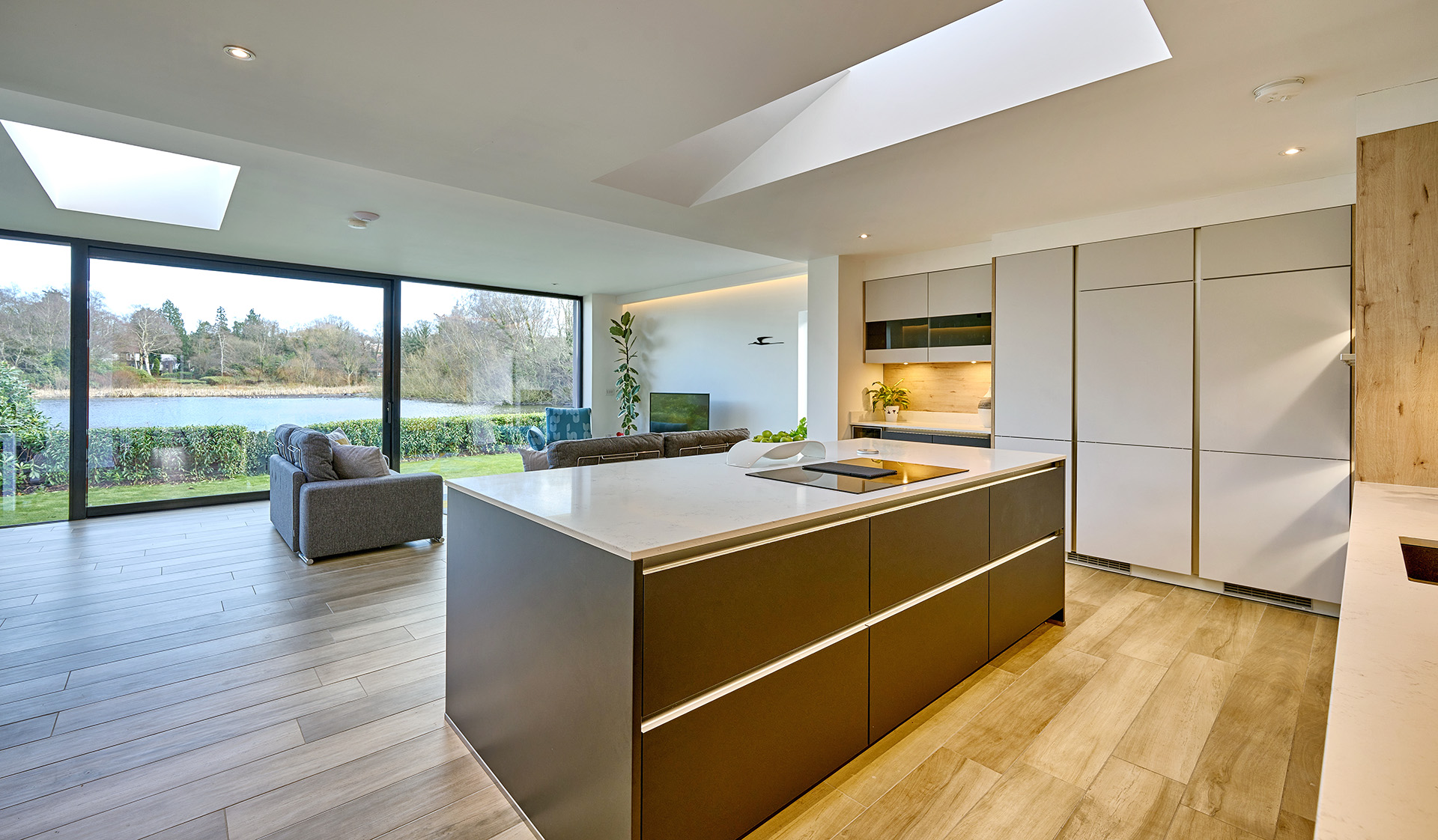 The kitchen island forms the heart of the room, being a practical and social hub that seamlessly connects the cooking, dining, and living spaces. Our team at Mode German Kitchens worked closely with the homeowners to achieve a perfect balance of style and functionality, bringing together a modern kitchen design that feels both elegant and inviting.